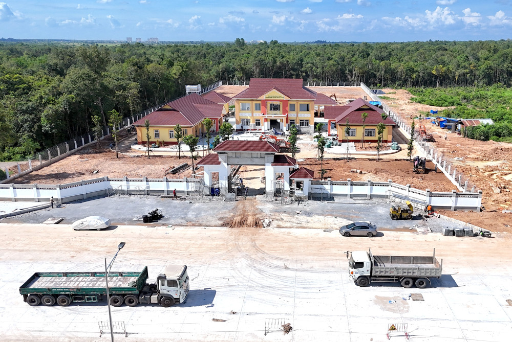 Những ngày này, thời tiết tại Tây Ninh nắng nóng gay gắt, vượt 38 - 39 độ C, lúc mưa dầm. Nhưng trên công trường thi công Cửa khẩu Quốc tế Tân Nam, hơn 380 kỹ sư, công nhân vẫn miệt mài bám trụ, quyết tâm hoàn thành dự án đúng tiến độ vào ngày 30/8, chào mừng 80 năm Cách mạng tháng Tám và Quốc khánh 02/9.
