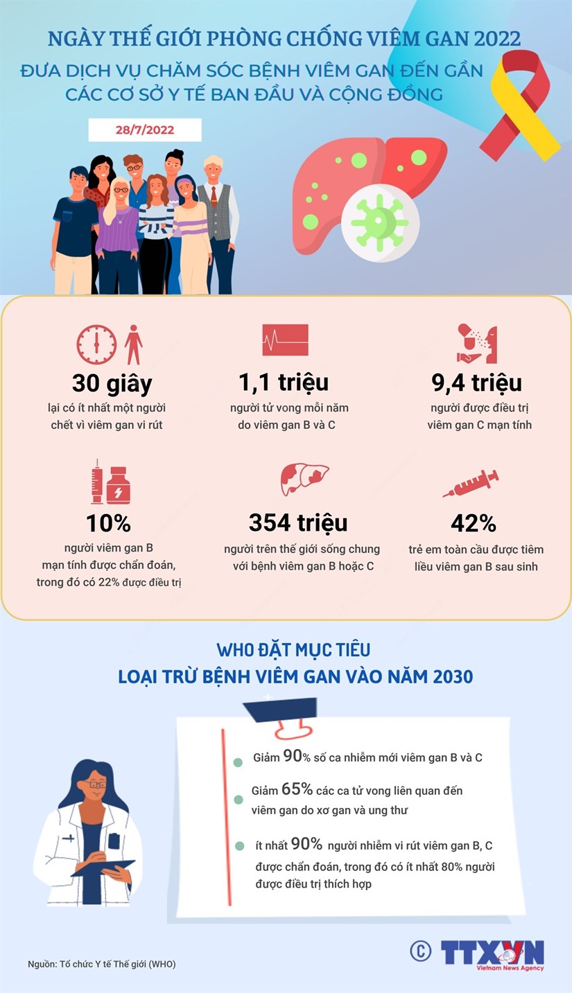 Theo Tổ chức Y tế Thế giới (WHO), khoảng 4,5 triệu ca tử vong sớm do viêm gan có thể được ngăn chặn ở các nước thu nhập thấp và trung bình vào năm 2030 thông qua tiêm chủng, xét nghiệm chẩn đoán, thuốc men và các chiến dịch giáo dục./.