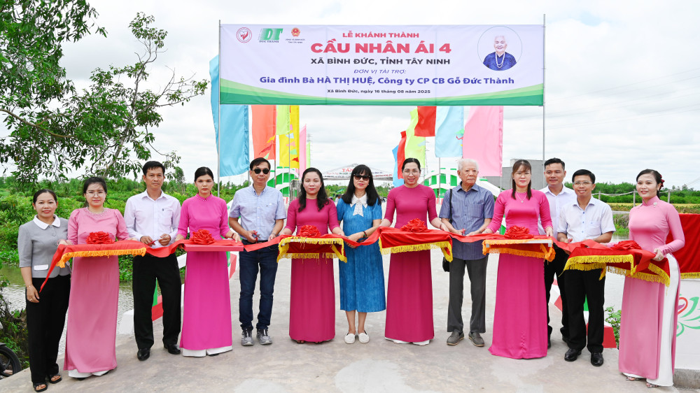 Sáng 16/8, UBND xã Bình Đức, tỉnh Tây Ninh tổ chức Lễ khánh thành và đưa vào sử dụng cầu Nhân Ái 4 trên địa bàn ấp Kênh Ngay Bình Đức, xã Bình Đức.