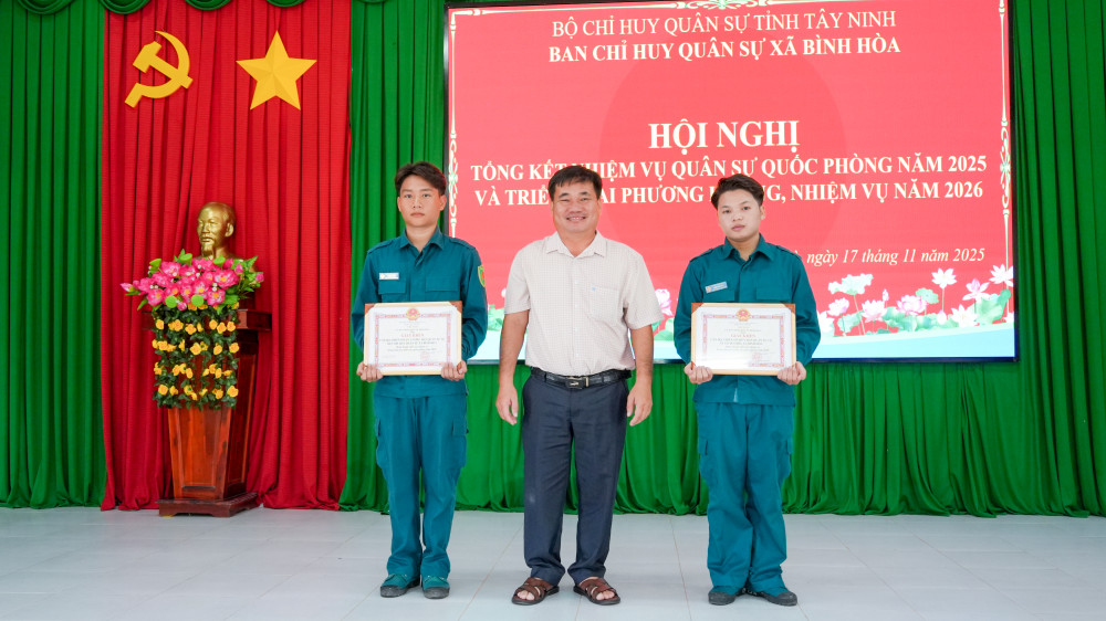Ngày 17/11, xã Bình Hòa, tỉnh Tây Ninh tổ chức Hội nghị tổng kết nhiệm vụ quân sự - quốc phòng năm 2025.