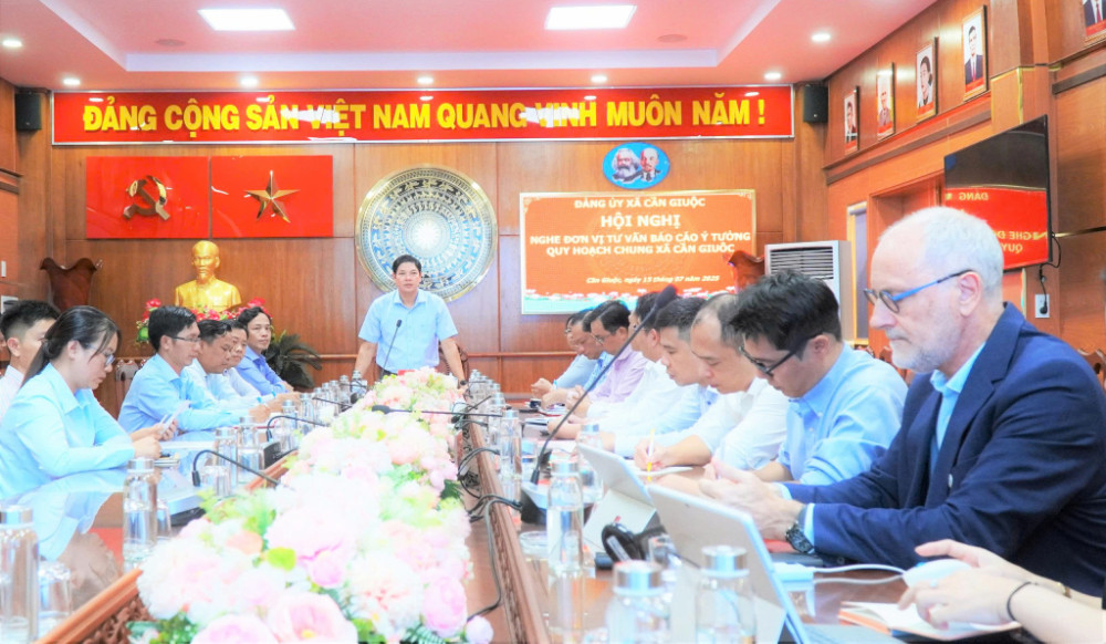 Chiều 15/7, Bí thư Đảng ủy xã Cần Giuộc Phạm Văn Bốn chủ trì cuộc họp nghe đơn vị tư vấn báo cáo ý tưởng quy hoạch chung xây dựng xã Cần Giuộc đến năm 2045.