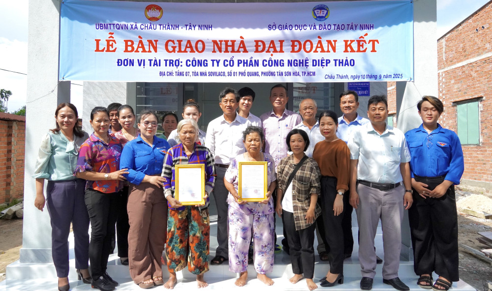 Chiều 10/9, UBND xã Châu Thành, tỉnh Tây Ninh tổ chức bàn giao 2 căn nhà Đại đoàn kết cho 2 hộ gia đình có hoàn cảnh khó khăn trên địa bàn xã.