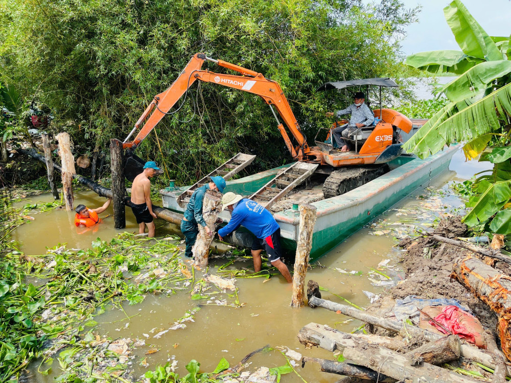 Xã Đức Huệ hỗ trợ người dân ngăn nước lũ