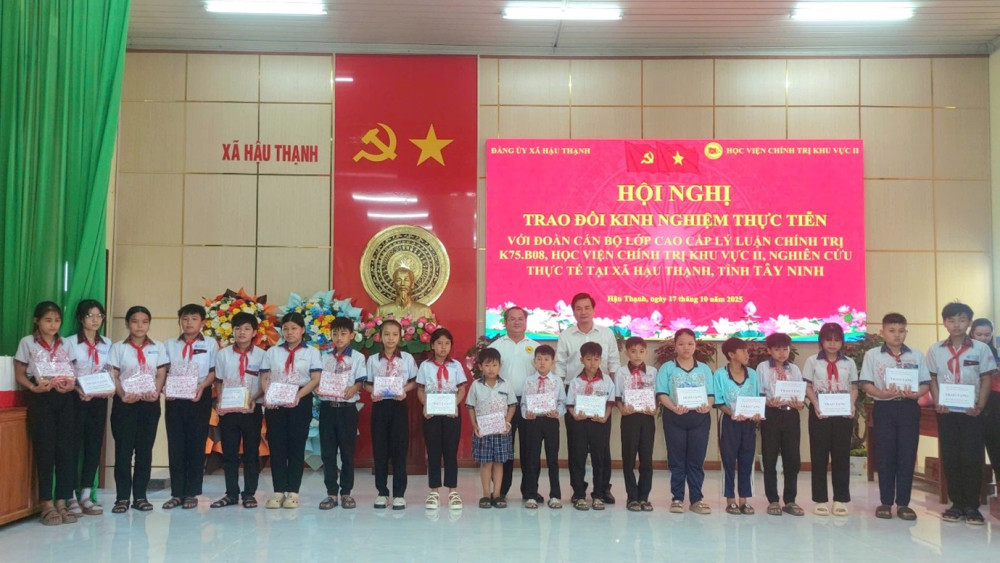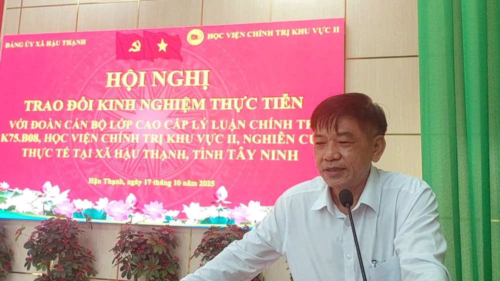 Ngày 17/10, Đoàn cán bộ lớp Cao cấp Lý luận chính trị K75.B08, Học viện Chính trị khu vực II, do ông Phạm Tấn Xuân Tước – Giảng viên Học viện Chính trị khu vực II, Chủ nhiệm lớp làm trưởng đoàn, có chuyến thăm và làm việc tại UBND xã Hậu Thạnh, tỉnh Tây Ninh.