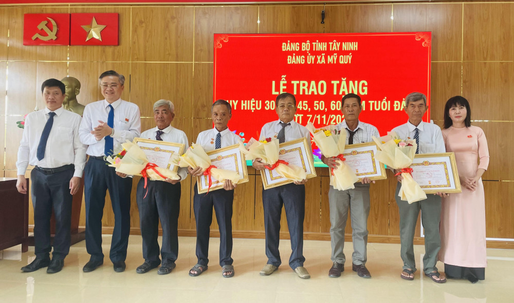 Sáng 07/11, Đảng ủy xã Mỹ Quý (tỉnh Tây Ninh) tổ chức Lễ trao tặng Huy hiệu Đảng đợt 07/11/2025. Đến dự có Bí thư Đảng ủy, Chủ tịch HĐND xã Nguyễn Thanh Nguyên; lãnh đạo Đảng ủy, UBND xã.