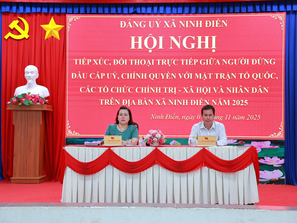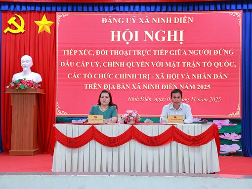 Ngày 07/11, xã Ninh Điền, tỉnh Tây Ninh tổ chức Hội nghị tiếp xúc, đối thoại giữa người đứng đầu cấp ủy, chính quyền với UBMTTQ Việt Nam xã, các tổ chức chính trị - xã hội và đại diện người dân 11 ấp trên địa bàn xã năm 2025.
