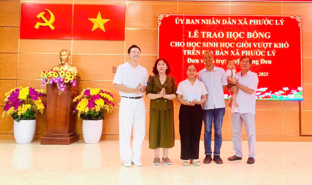 Chiều 06/11, UBND xã Phước Lý, tỉnh Tây Ninh phối hợp Quỹ Trăng Đen tổ chức chương trình tặng học bổng cho học sinh học giỏi vượt khó. Bí thư Đảng ủy, Chủ tịch HĐND xã Nguyễn Hoàng Lâm; Phó Chủ tịch UBND xã Nguyễn Minh Tâm cùng đơn vị tài trợ tham dự.