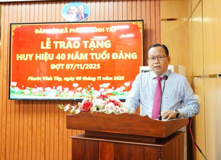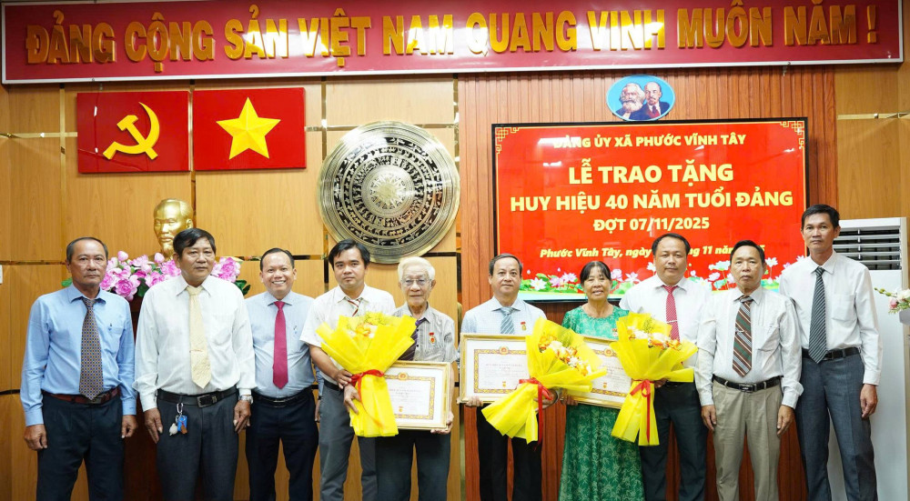 Ngày 06/11, Đảng ủy xã Phước Vĩnh Tây, tỉnh Tây Ninh tổ chức trao Huy hiệu Đảng cho các đảng viên sinh hoạt tại các chi bộ trực thuộc.