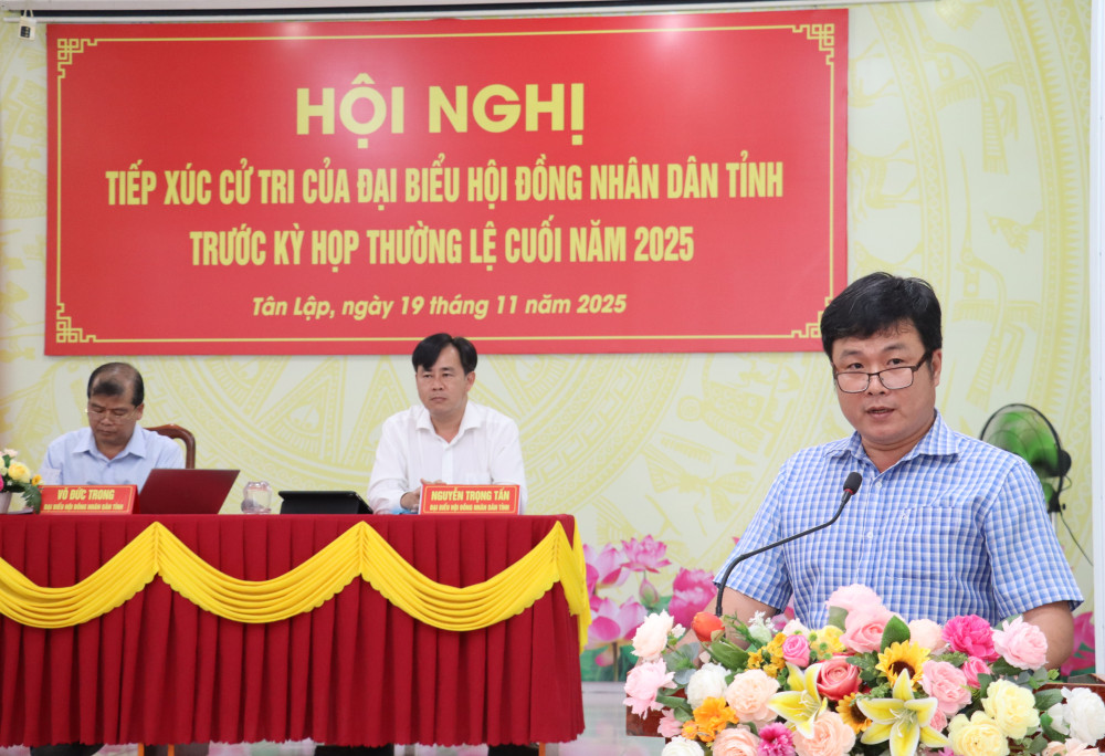 Chiều 19/11, Tổ đại biểu số 07 HĐND tỉnh Tây Ninh tiếp xúc cử tri xã Tân Lập trước kỳ họp thường lệ cuối năm 2025 của HĐND tỉnh khóa X, nhiệm kỳ 2021-2026.