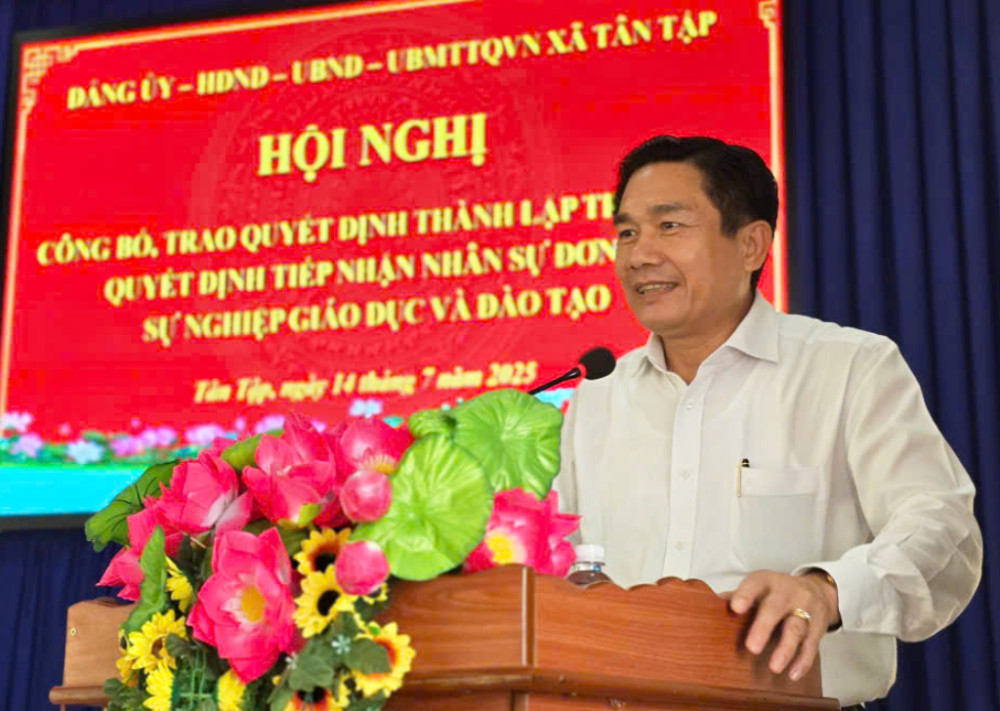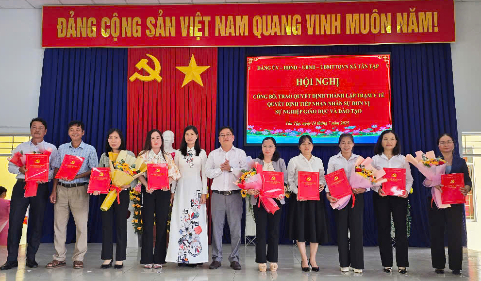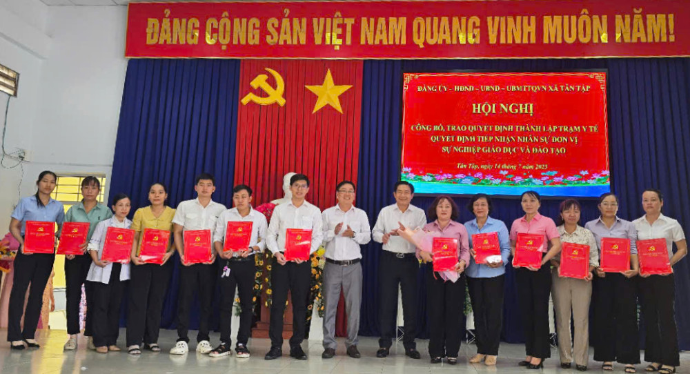 Sáng 14/7, xã Tân Tập, tỉnh Tây Ninh tổ chức Hội nghị công bố, trao quyết định thành lập Trạm Y tế, quyết định tiếp nhận nhân sự đơn vị sự nghiệp Giáo dục và Đào tạo.