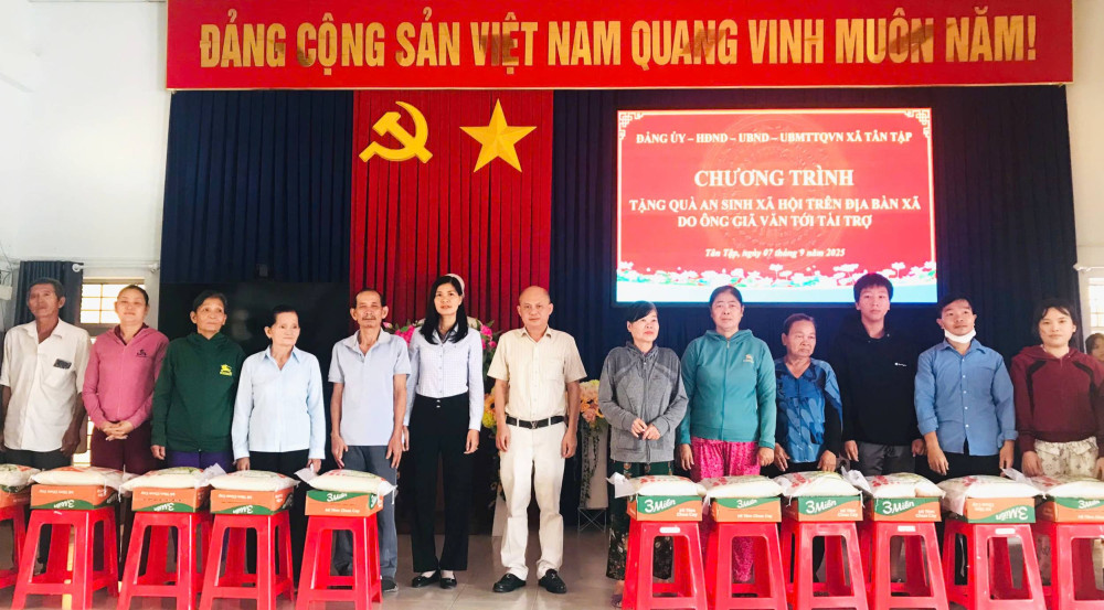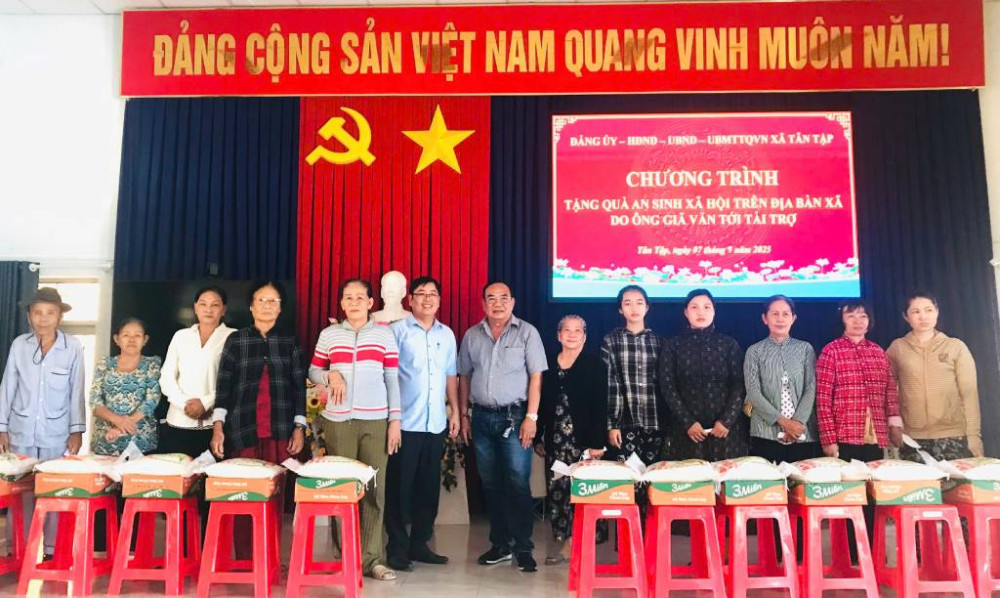 Ngày 07/9, xã Tân Tập, tỉnh Tây Ninh tổ chức trao tặng quà cho hộ nghèo, hộ cận nghèo, gia đình có hoàn cảnh khó khăn trên địa bàn xã.
