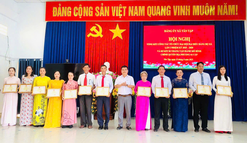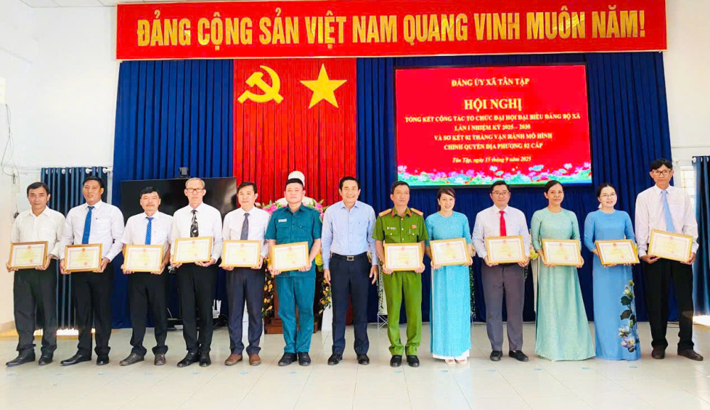 Ngày 15/9, Đảng ủy xã Tân Tập, tỉnh Tây Ninh tổng kết công tác tổ chức Đại hội đại biểu Đảng bộ xã lần thứ I, nhiệm kỳ 2025 - 2030 và sơ kết 2 tháng vận hành chính quyền 2 cấp.