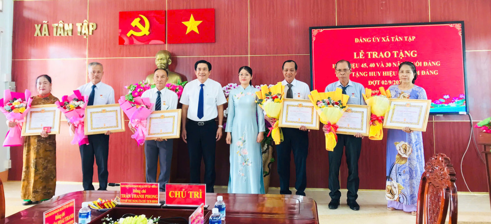 Nhân kỷ niệm 80 năm Quốc khánh nước Cộng hòa xã hội chủ nghĩa Việt Nam (02/9/1945 - 02/9/2025), ngày 28/8, Đảng ủy xã Tân Tập, tỉnh Tây Ninh tổ chức Lễ trao tặng và truy tặng Huy hiệu Đảng đợt 02/9 cho 6 đảng viên. Bí thư Đảng ủy, Chủ tịch HĐND xã Tân Tập Trần Thanh Phong đến dự và trao các Huy hiệu Đảng.