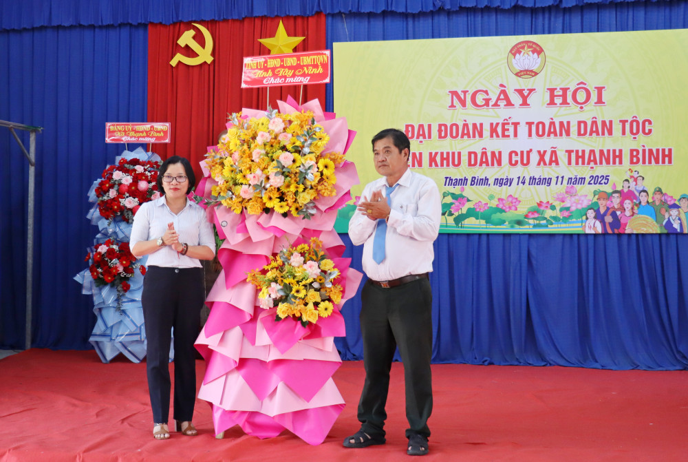 Ngày 14/11, tại Trung tâm Cung ứng dịch vụ sự nghiệp công xã Thạnh Bình (ấp Thạnh Lợi, tỉnh Tây Ninh) diễn ra Ngày hội Đại đoàn kết toàn dân tộc Liên khu dân cư xã Thạnh Bình (các ấp Thạnh Lợi, Thạnh An, Thạnh Lộc, Thạnh Thọ, Thạnh Tân, Thạnh Hòa, Thạnh Phú, Thạnh Phước) năm 2025.