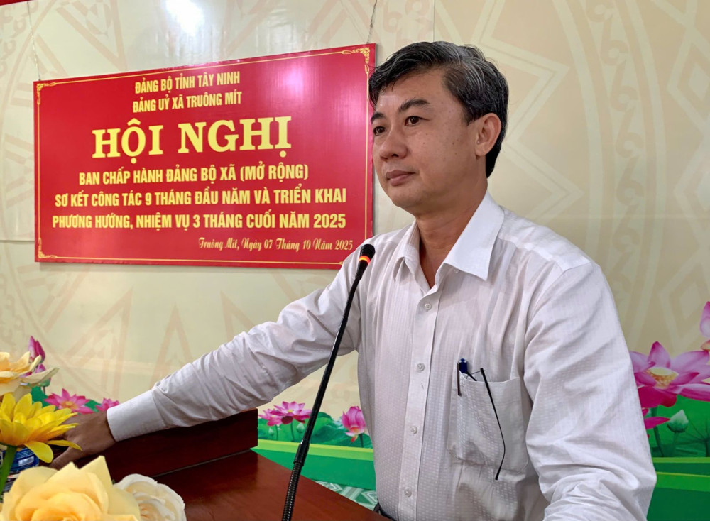 Ngày 07/10, Ban Chấp hành Đảng bộ xã Truông Mít tổ chức Hội nghị sơ kết hoạt động 9 tháng và triển khai phương hướng, nhiệm vụ 3 tháng cuối năm 2025. Bí thư Đảng uỷ xã Trần Thị Huy Hoàng chủ trì hội nghị.