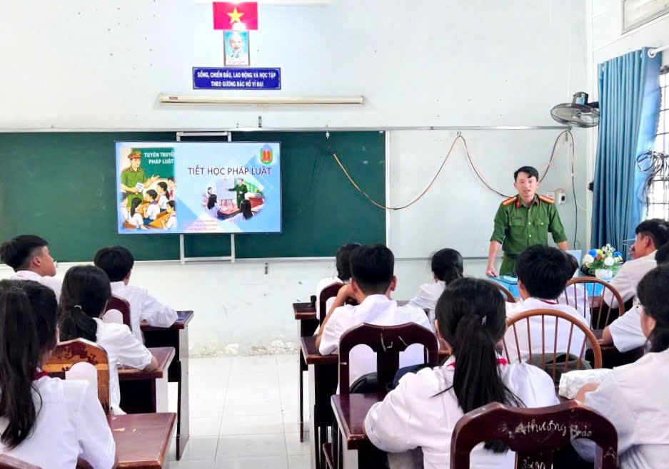 Qua Tiết học pháp luật, Công an xã Long Thuận trang bị cho học sinh những kiến thức pháp luật cơ bản