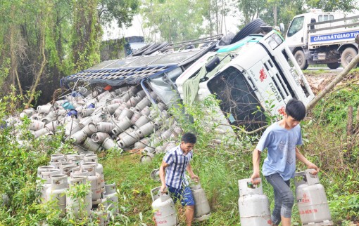 Xe chở bình gas lật nhào trên Quốc lộ N2