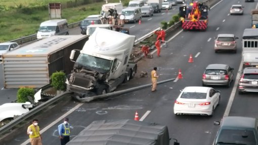 Khoảng 15 giờ chiều 18/6, trên cao tốc Trung Lương – TP.HCM xảy ra vụ lật xe container làm ùn tắc kéo dài.