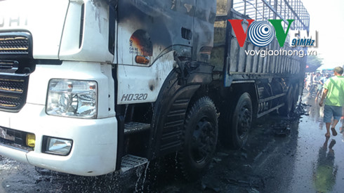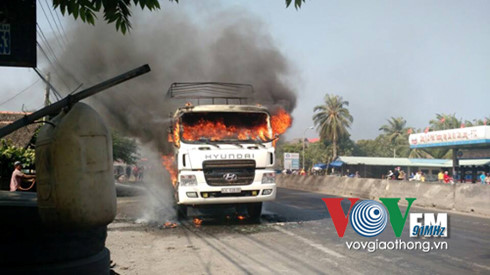 Xe tải chở thùng xốp đang lưu thông trên tuyến Quốc lộ 1, đoạn qua địa bàn xã Mỹ Đức Đông, tỉnh Tiền Giang thì bất ngờ bốc cháy dữ dội.