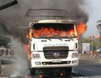 Xe tải chở xốp bốc cháy dữ dội khi đang lưu thông trên QL1